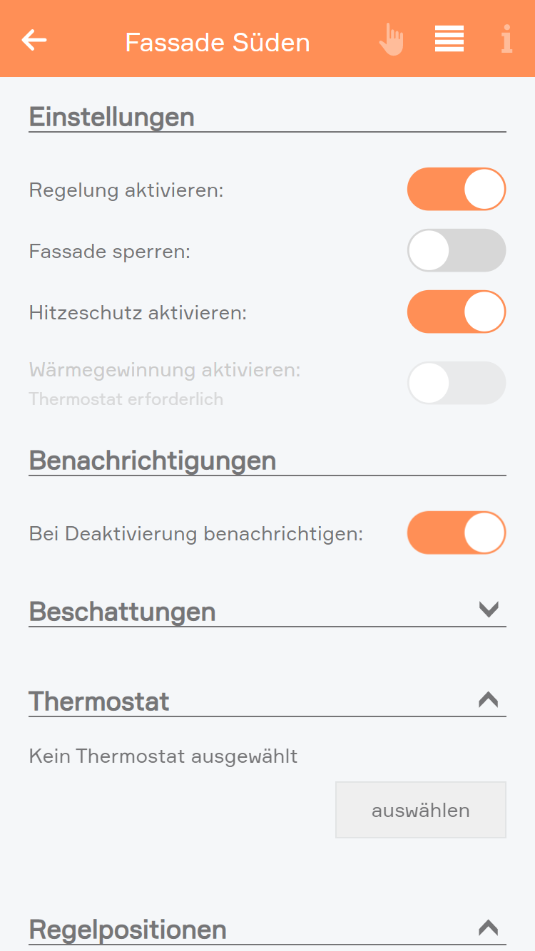 Sie finden die Beschattungsregelung unter „Einstellungen“ - „Beschattungsregelung“.