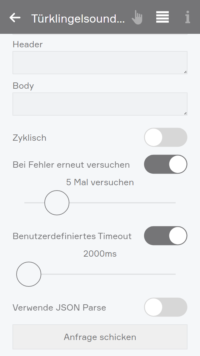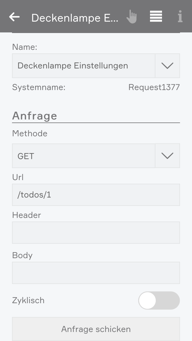 - REST Anfrage: Hier können Sie Befehle und allgemeine Anfragen an ein REST Service senden, ohne die Rückmeldung weiter zu verarbeiten