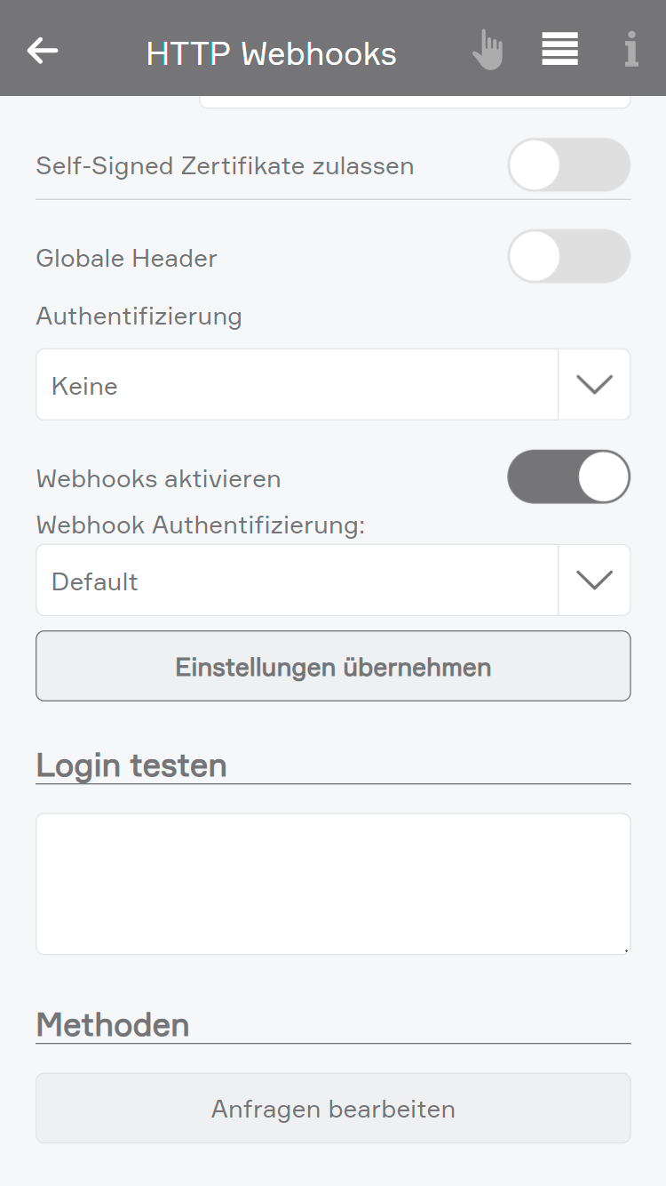 Damit die Webhooks genutzt werden können, müssen diese noch in den Anfragen aktiviert werden. Siehe weiter unten.