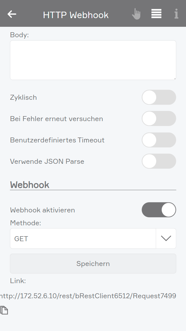 Aktuell stehen Webhooks nur im lokalen Netzwerk zur Verfügung.