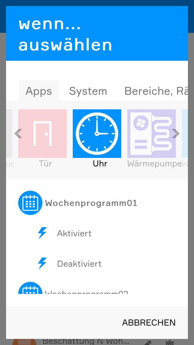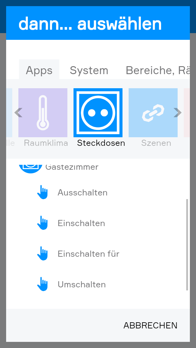 Außerdem können die Anfragen auch an anderen Stellen Ihres evon Smart Home verwendet werden, wie zum Beispiel in den Szenen.