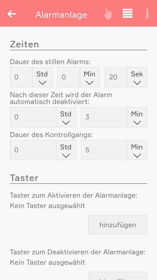 In unserem Schlafzimmerbeispiel planen wir zusätzliche eine Alarmanlage ein, für die wir digitale Eingänge benötigen und einen Taster zum Aktivieren und Deaktivieren der Alarmanlage, sowie Schließerkontakte für das Fenster und die Balkontür.