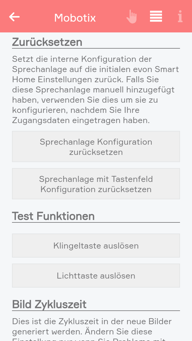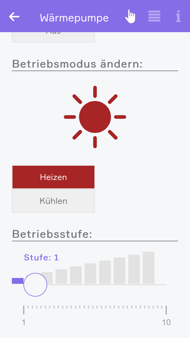 In der Bedienung des evon Smart Home Connect Clients werden die ausgewählten Werte angezeigt und die Methoden können ausgeführt werden.