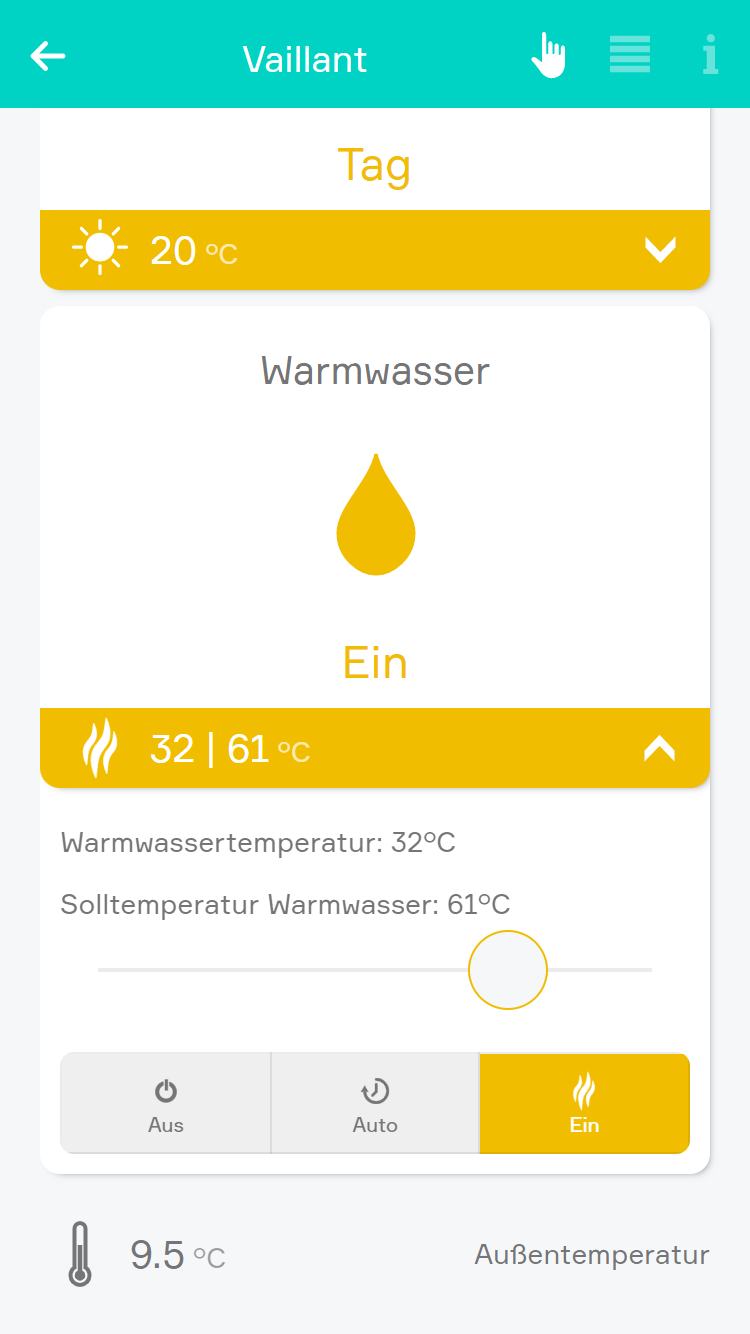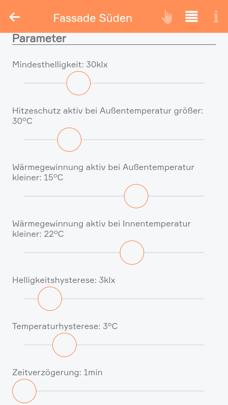 Im Parameter Panel kann für die drei Betriebsmodi eine Solltemperatur gewählt werden. Dabei kann ein Fixwert bestimmt oder ein im System vorhandener Nummernwert verknüpft werden.