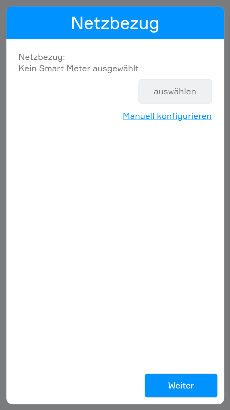 Start des Salzelektrolyseanlagen-Wizards nachdem Salzelektrolyseanlage im Pool-Wizard ausgewählt wurde. In diesem Schritt ist die Schnittstelle, an die die Salzelektrolyseanlage angeschlossen ist, auszuwählen.