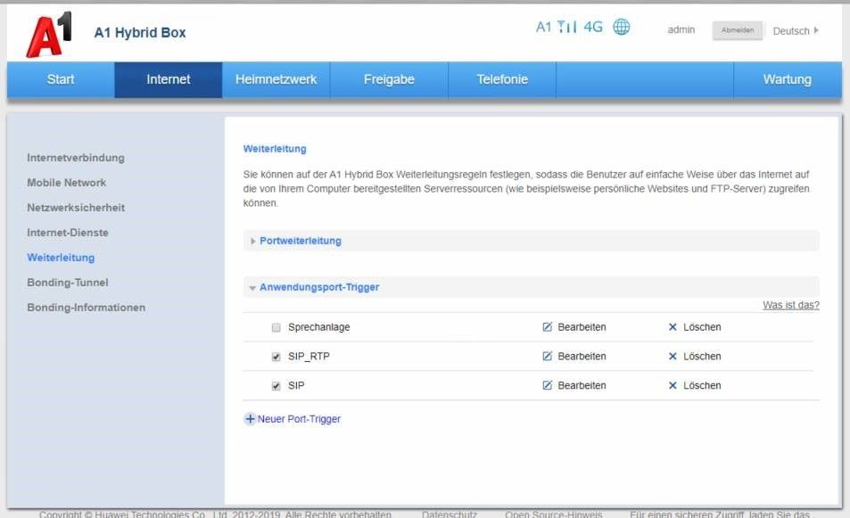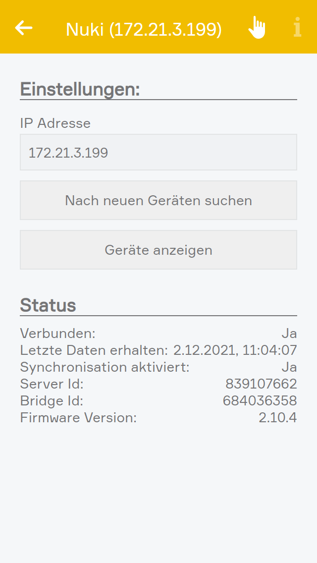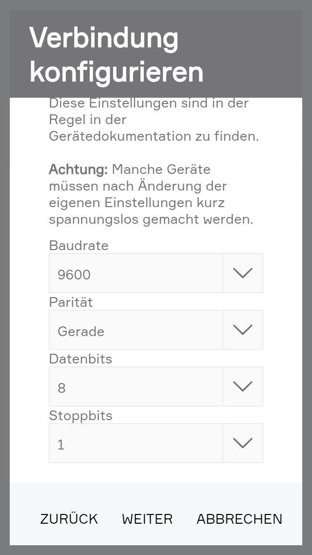 Nach der Auswahl der Schnittstelle werden die Einstellungen übernommen.