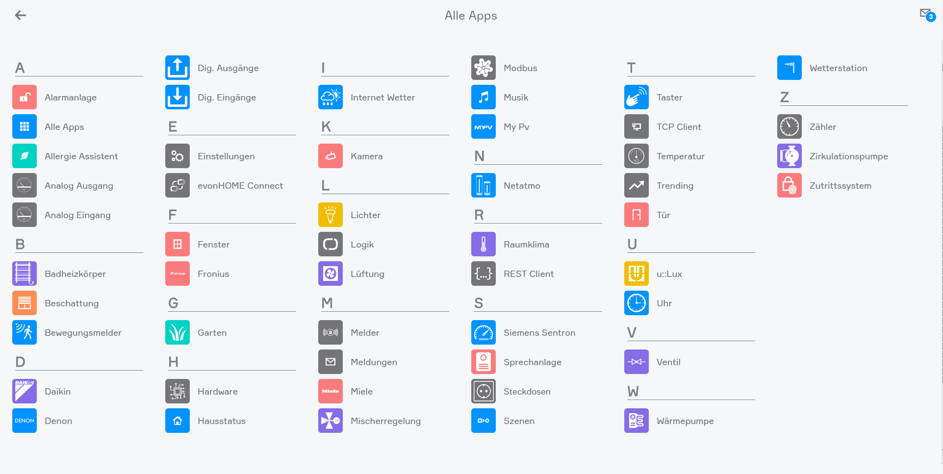 Durch den neuen Aufbau wurden sowohl die Ladezeiten als auch die Suche von Funktionen wesentlich verbessert. Zusätzlich wurde eine Suchfunktion ergänzt, wodurch Instanzen durch eingeben des Namen (z.B. Deckenbeleuchtung) oder zugeordneten Bereichs (z.B. Wohnzimmer) einfach und schnell gefunden werden.