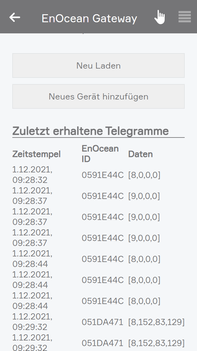 Nach der Auswahl der Schnittstelle werden die Einstellungen übernommen.