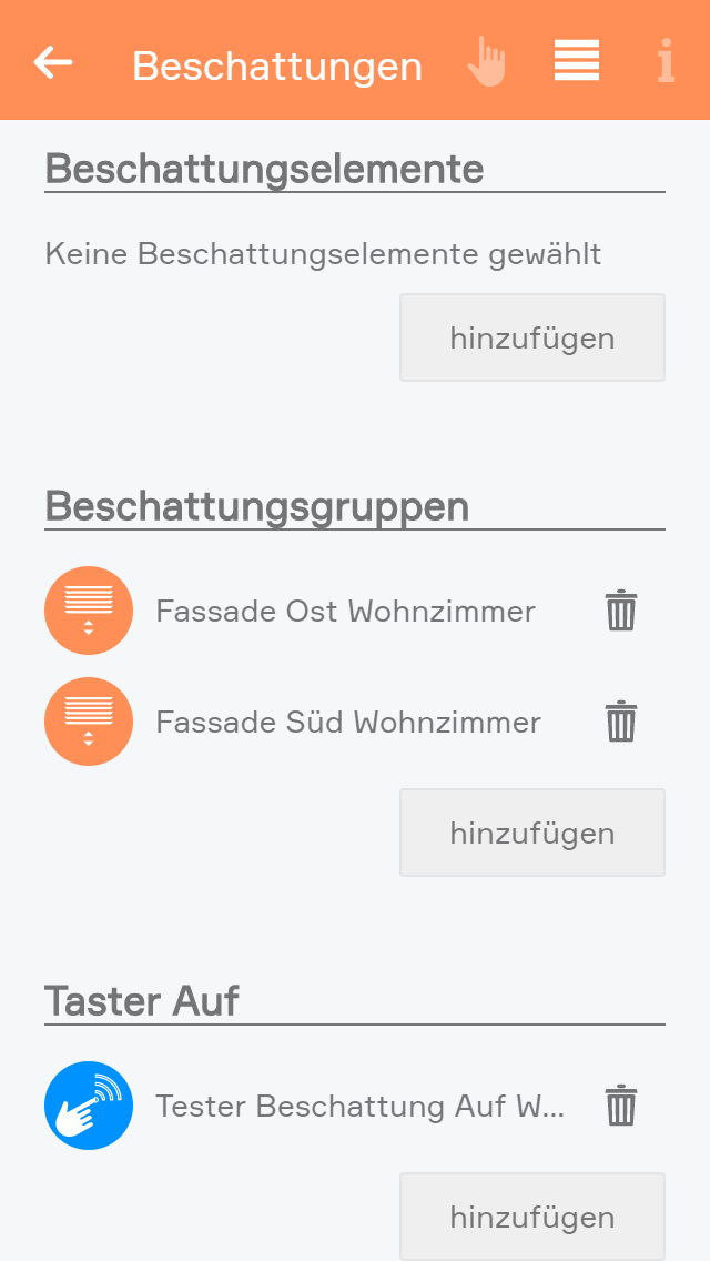 Beschattungsgruppen können ab jetzt mehrfach verschachtelt werden. Sie können somit sehr einfach mehrere Untergruppen (z.B.: Beschattung Süd, Beschattung Ost, ...) anlegen und diese zu einer zentralen Gruppen hinzufügen (z.B.: Beschattung OG Zentral).Weitere Informationen und die genaue Konfiguration finden Sie hier