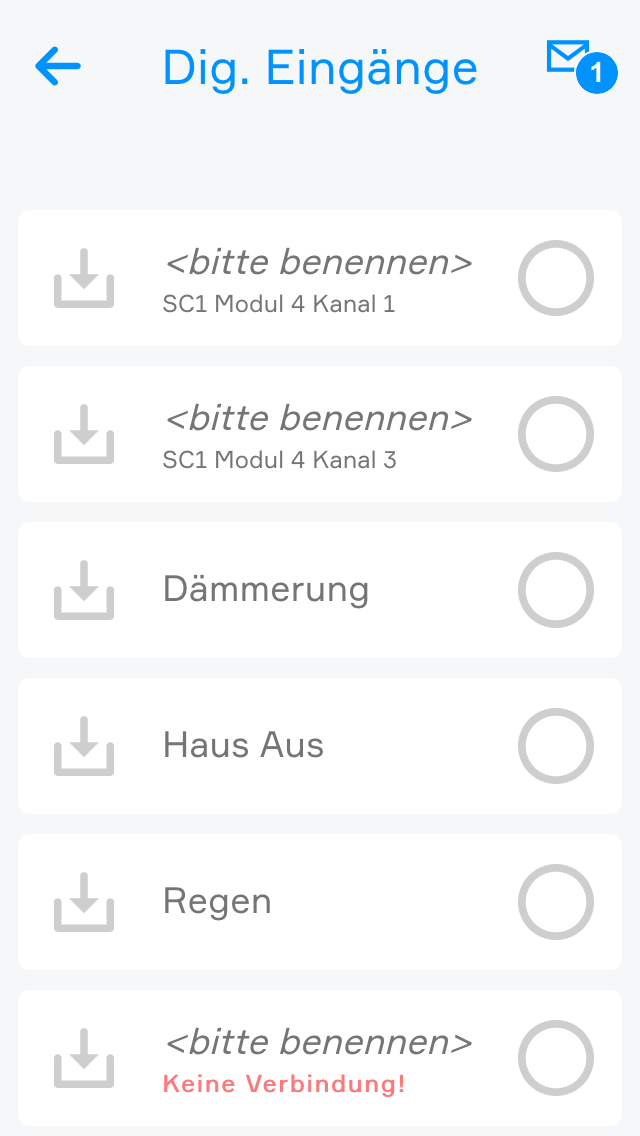 In unserem Schlafzimmerbeispiel planen wir zusätzliche eine Alarmanlage ein, für die wir digitale Eingänge benötigen und einen Taster zum Aktivieren und Deaktivieren der Alarmanlage, sowie Schließerkontakte für das Fenster und die Balkontür.