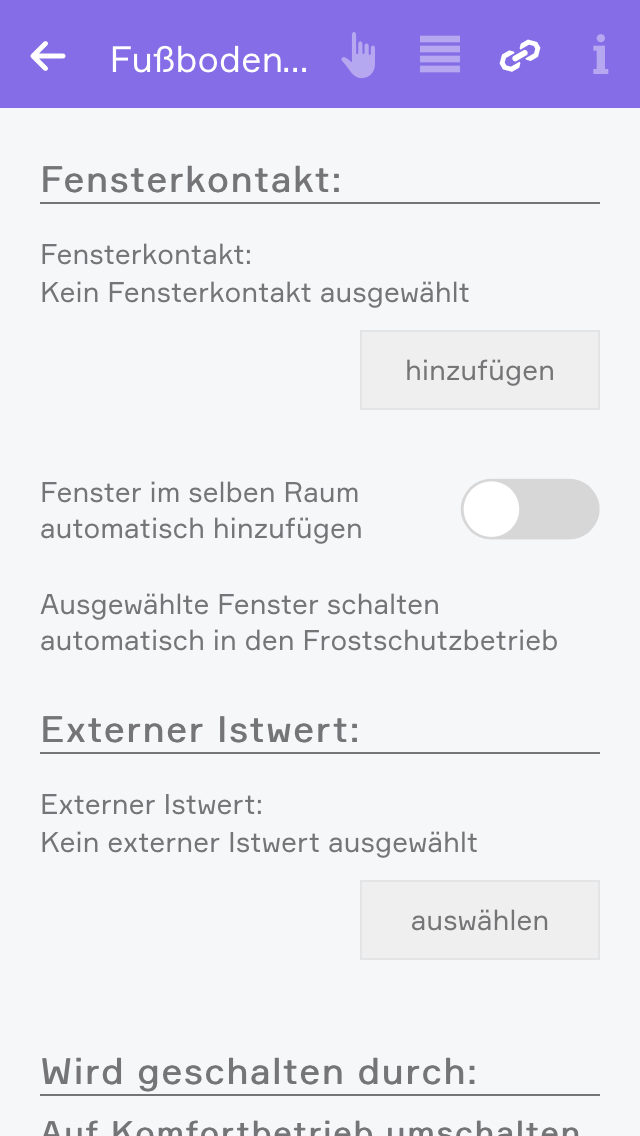 - auf Auto Betrieb umschalten: Setzt den Betrieb der Zone auf Auto