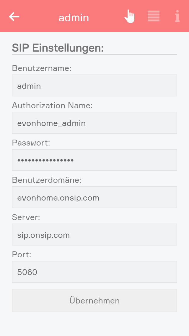 Wurde die Sprechanlage manuell von Ihnen angelegt, müssen Sie in die Einstellungen gehen und die IP Adresse eintragen. Nutzername und Passwort sind bereits ausgefüllt, können aber jederzeit geändert werden, falls Sie diese in der Türsprechanlage angepasst haben.