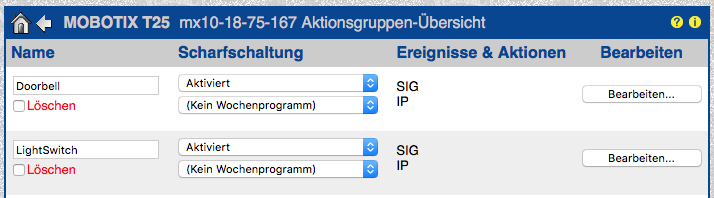 Diese Ein- und Ausgänge sind teilweise für einen bestimmten Zweck (Regen, Sturm, ...) vordefiniert, können aber beliebig geändert werden.