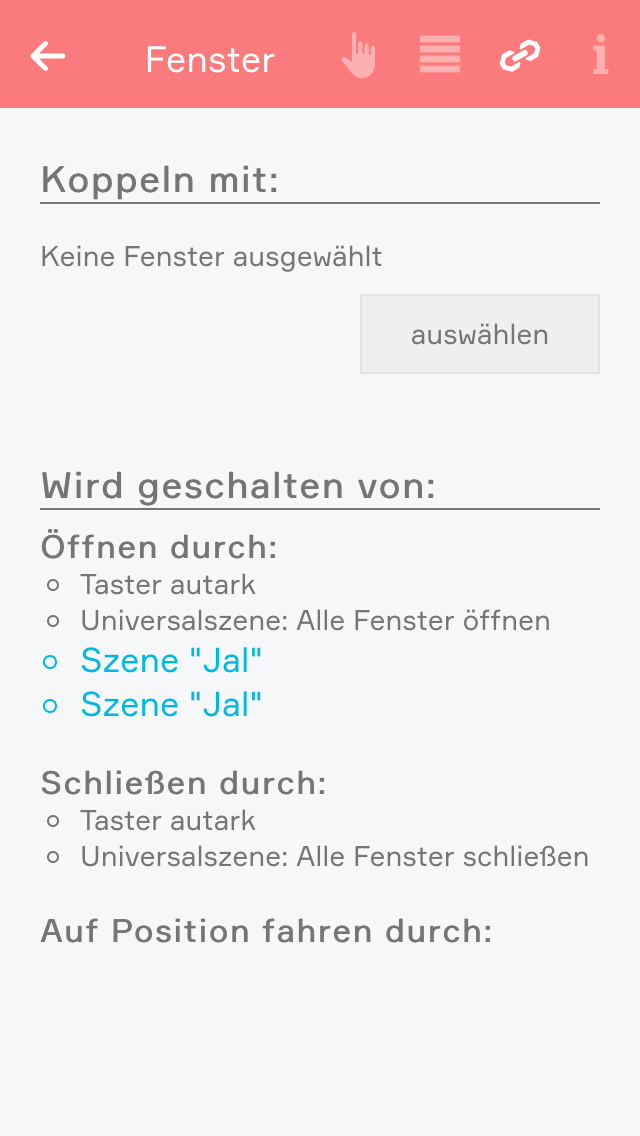 Im Schlafzimmer gibt es ein Fenster und eine Balkontür, deren Beschattung gesteuert werden soll. Beide Beschattungselemente sind mit einem normalen Motor (AUF / ZU, 230V) ausgestattet. Wir planen daher für die Beschattung ein evon Smart Home Jalousiemodul B1144 ein, wobei der erste Ausgang für die Balkontür und der zweite Ausgang für das Fenster verwendet werden.