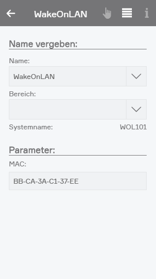 Im Parameter Panel kann der Name und Raum des Wärmeerzeugers vergeben werden.
