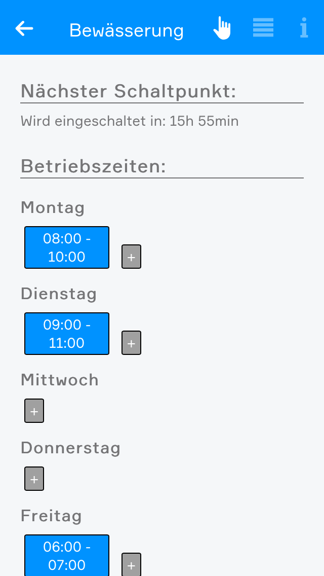 Beim Starten kann eine Zeit angegeben werden über welche der Mäher mähen soll und über diesen Zeitraum wird der aktuelle Timer überschrieben.