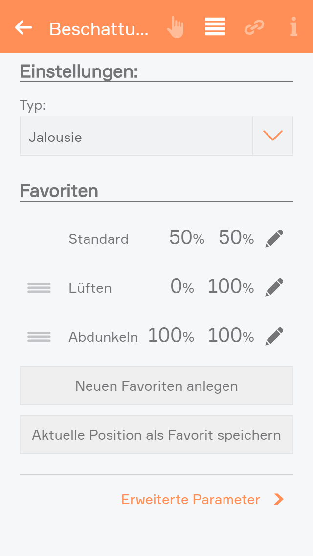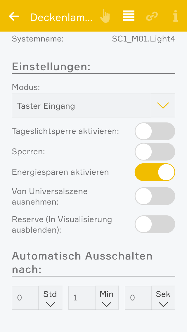 Alle Lichter im System wurden so angepasst, dass eine einheitliche Bedienung und Konfiguration der Lichter möglich ist. Dadurch stehen jetzt Funktionen wie Externe Taster und Bewegungsmelder, eine Tageslichtsperre oder Energiesparen allen Lichtern zur Verfügung, egal ob schaltbare, dimmbare, DALI oder RGBW Lichter.Erweiterungen der Lichtgruppen