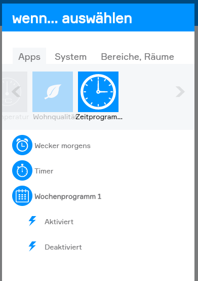 Die Vaillant App bietet folgende Funktionen für evon Smart Home Szenen (Dann...):