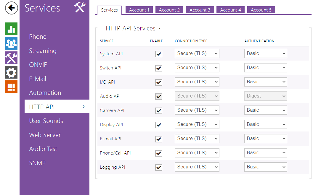 - Konfigurieren Sie bei allen Services die das Feld "Authentication" auf "Basic" und klicken Sie auf "Save"
