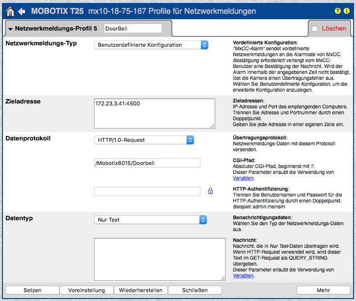 - Klingeltaste wurde gedrückt: Die Klingeltaste an der Außenstelle wurde betätigt