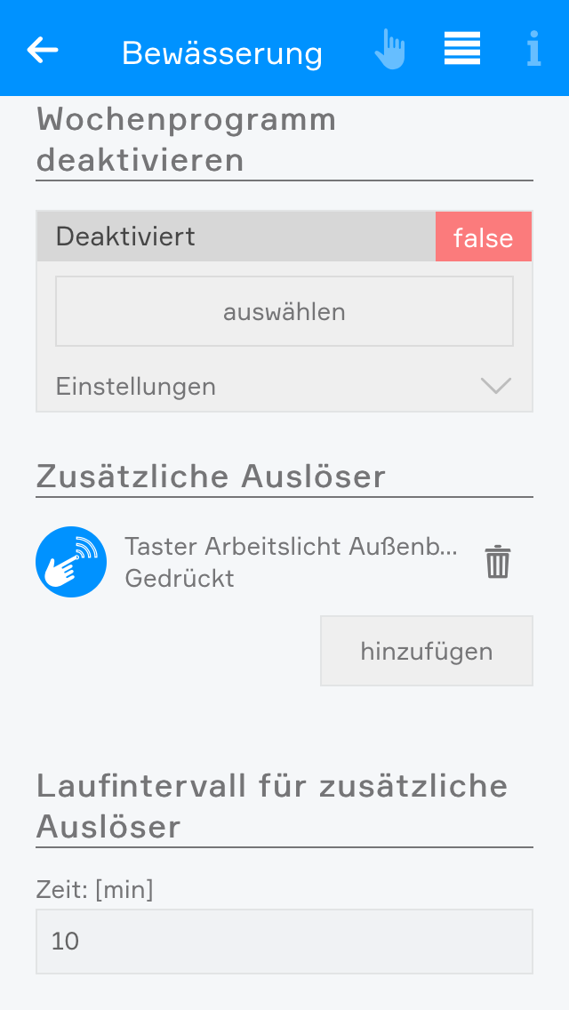 Beim Starten kann eine Zeit angegeben werden über welche der Mäher mähen soll und über diesen Zeitraum wird der aktuelle Timer überschrieben.