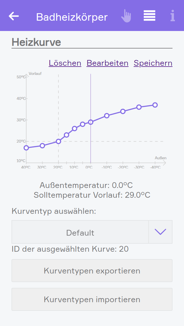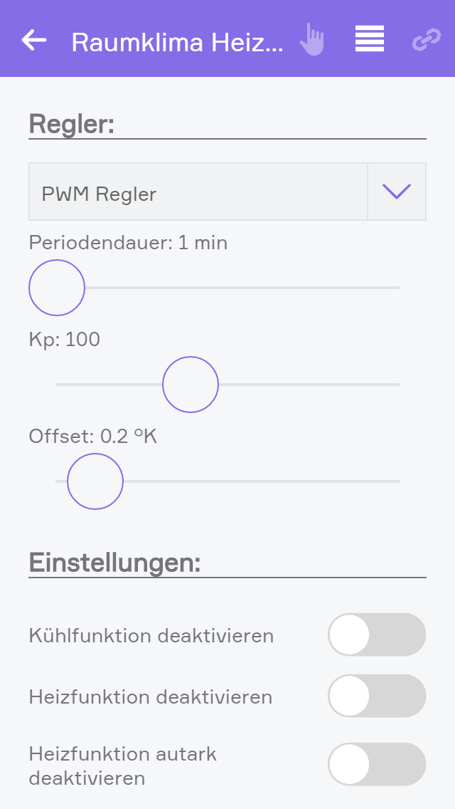 - Solltemperatur für Tag setzen: Setzt die Solltemperatur für den Tagbetrieb der Zone