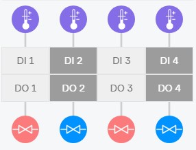 Zur Temperaturregelung benötigen Sie evon Smart Home Einzelraumregelmodule C1144 oder C1244. Das Modul C1144 wird mit evon Smart Home Raumbediengeräten gesteuert und das Modul C1244 mit PT1000 Sensoren bzw. von einem externen Istwert (z.B. Wert von einem analogen Eingang).