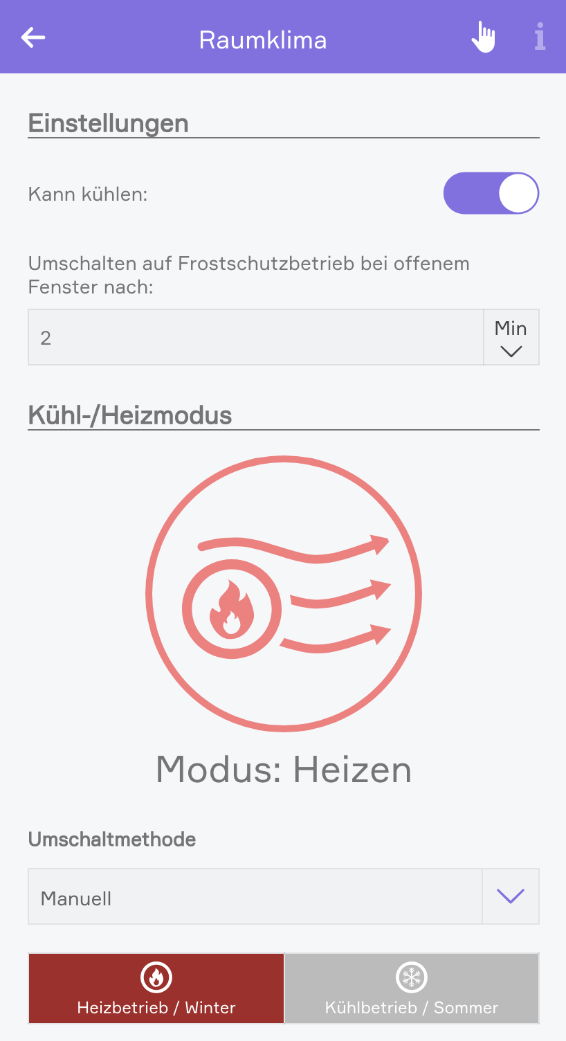 - auf Tag Betrieb umschalten: Setzt den Betrieb der Zone auf Tag