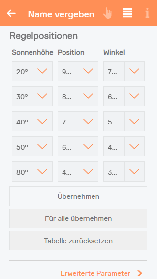 Im Parameter Panel ist neben der Bezeichnung und dem Bereich auch der Reiter "Status" vorhanden.