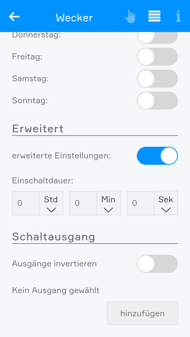In unserem Schlafzimmerbeispiel planen wir zusätzliche eine Alarmanlage ein, für die wir digitale Eingänge benötigen und einen Taster zum Aktivieren und Deaktivieren der Alarmanlage, sowie Schließerkontakte für das Fenster und die Balkontür.