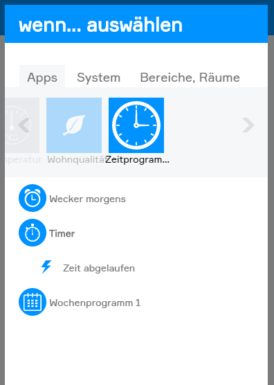 Die Projektor App bietet folgende Funktionen für evon Smart Home Szenen (Dann...):
