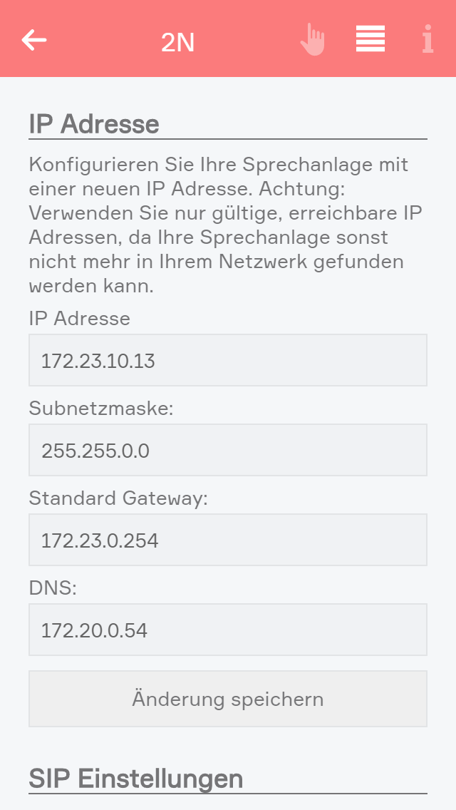 Im Parameter Panel kann nochmals die IP-Adresse sowie der Port geändert werden.
