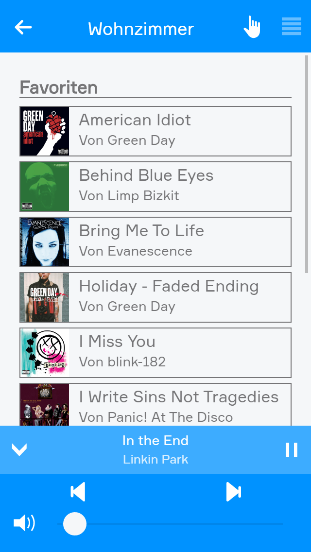 Nachdem der Projektor erfolgreich hinzugefügt wurde, kann ins Operator Panel gewechselt werden. Hier ist der Status des Projektors ersichtlich, sowie das Ein-/Ausschalten des Geräts möglich. Wenn das Projektor Symbol grau ist, ist dieser ausgeschalten. Wenn dieser hingegen die Farbe Blau hat, ist er eingeschalten.