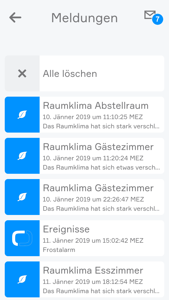 - Tür geschlossen: Die Tür wurde geschlossen (wird nur bei konfiguriertem Türsensor ausgelöst)