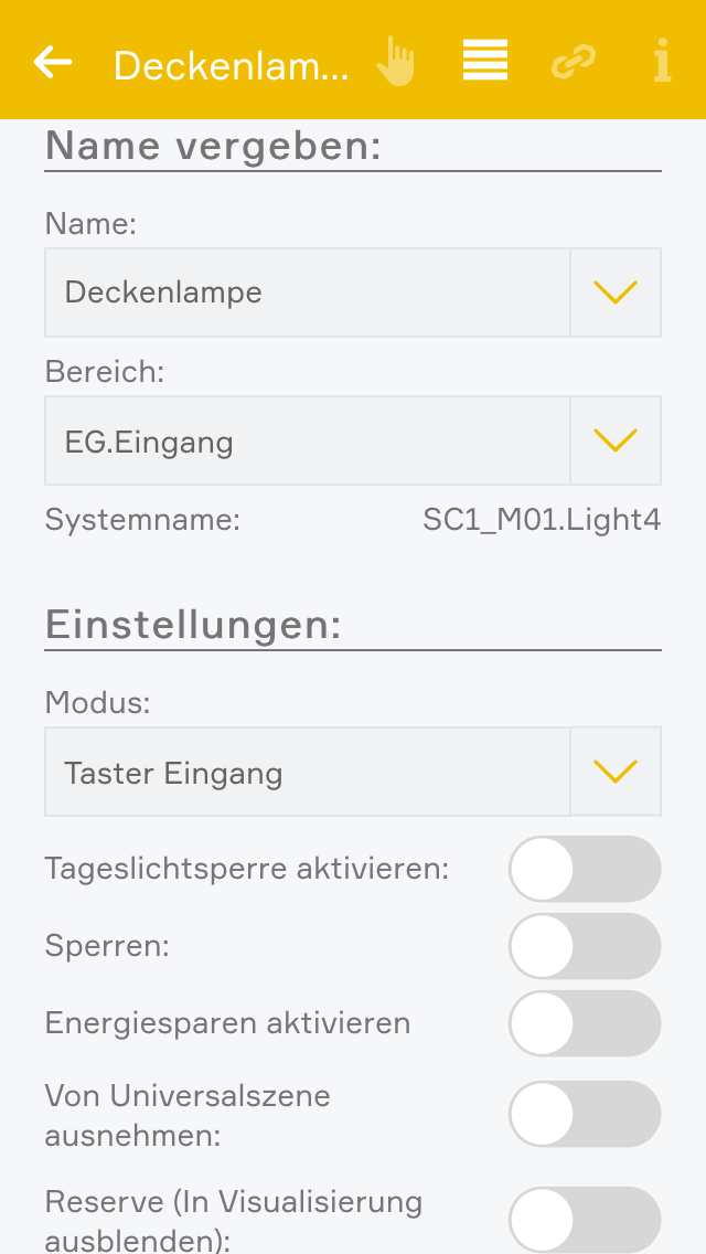 - 1x 2-fach Taster hinter dem Bett für Sonderfunktionen, diese könnten normalerweise über Doppelklick oder langen Tastendruck abgehandelt werden und sind nur in unserem Beispiel, um das evon Smart Home Digitalmodul D1180 zu demonstrieren.