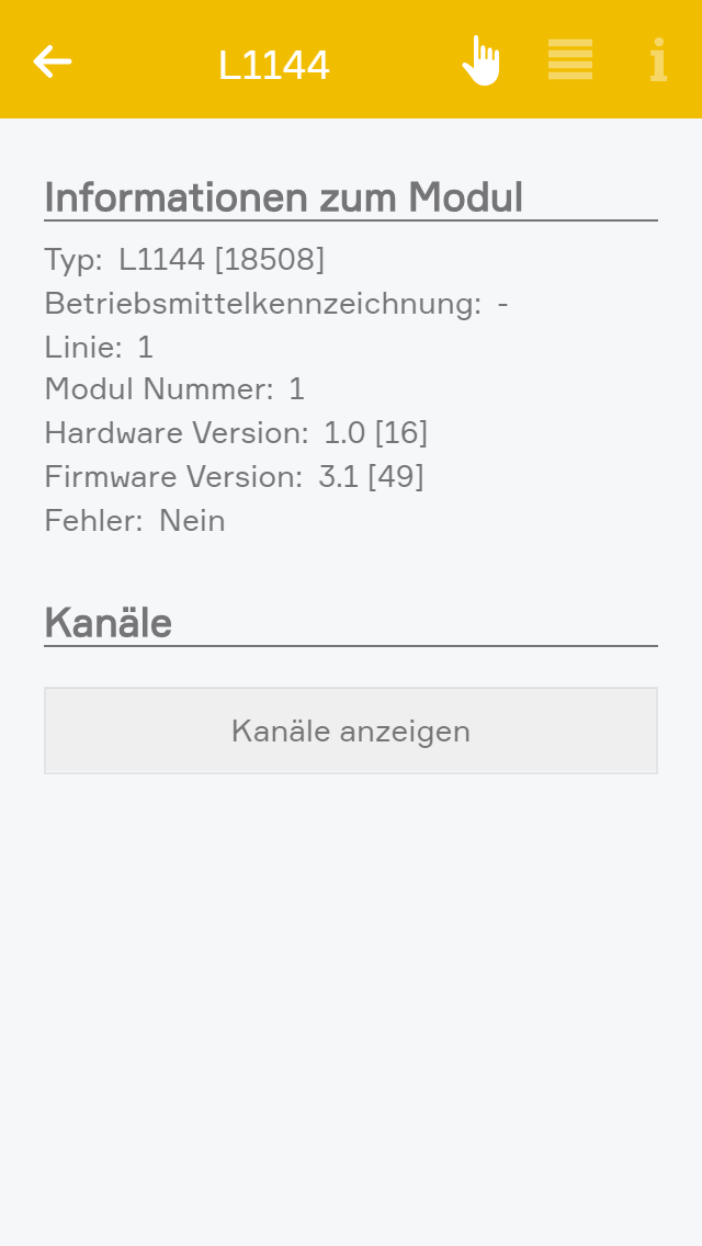Bei einigen Geräten (z.B. Tastern) kann im Operator Panel auch zu den Sub-Geräten navigiert werden. In diesem Fall wird durch einen Klick auf "Taster anzeigen" ein neues Fenster geöffnet, in dem alle einzelnen Taster angezeigt werden, die im Lernprozess des Gerätes eingelernt wurden.