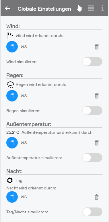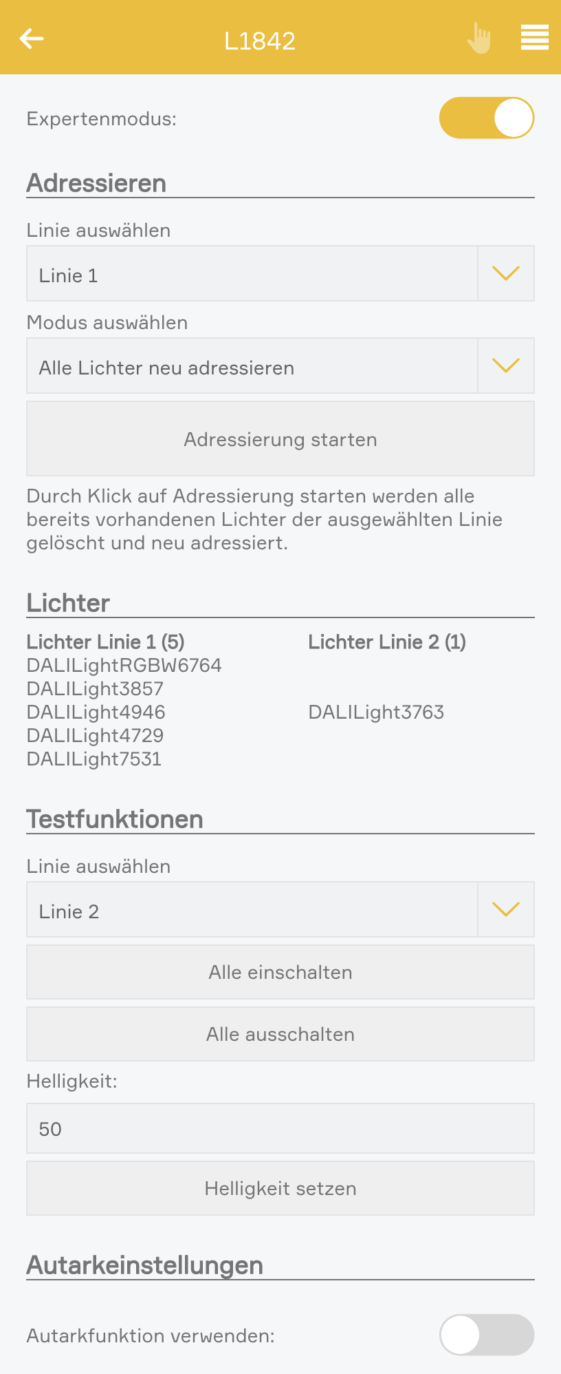 - Unter “Licht-Steuerung - Einstellungen - Einschalt-Status” muss eingestellt werden, ob das Gerät gerade “an” oder “aus” ist