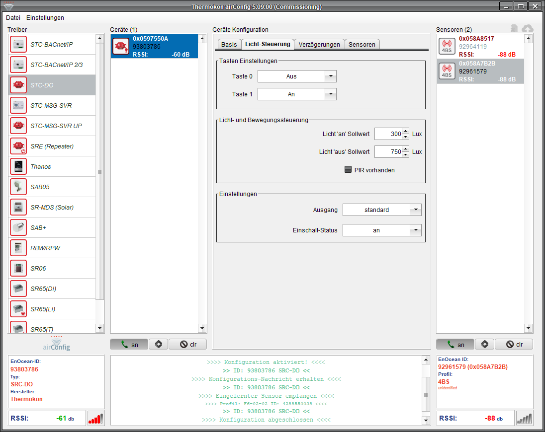 - Drücken Sie den Taster in Ihrem evon Smart Home, der den digitalen Ausgang umschalten sollte und achten Sie dabei im Programm "AirConfig" auf die "Sensoren"-Liste