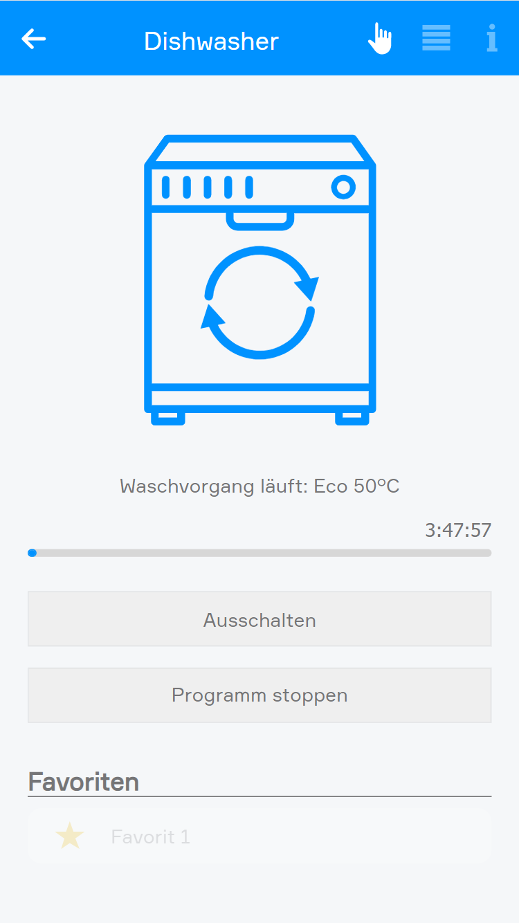 - Ausschalten (Vorhanden bei: Kaffeemaschine, Geschirrspüler, Ofen): Gerät ausschalten