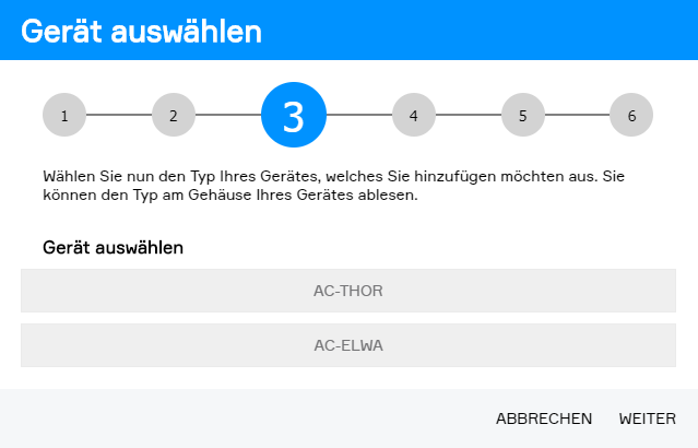 Danach wird ein Wizard gestartet, welcher im ersten Schritt das einzulernende Gerät abfragt.