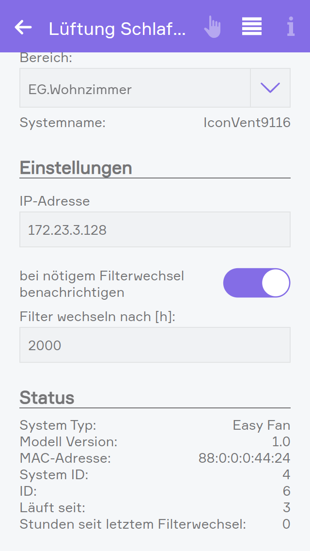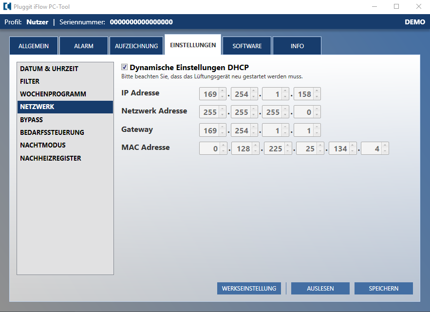Unter "Einstellungen" werden die Einstellungen des Gateways angezeigt.