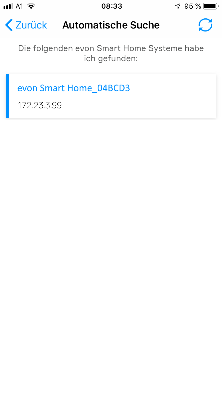 Wechseln Sie nach “Geräte Konfiguration - Basis - Steuerung” und klicken Sie auf die Schaltfläche “LRN”. Danach muss dieses Gerät in Ihrem evon Smart Home gefunden und automatisch hinzugefügt werden. Falls es nicht gefunden wurde, klicken Sie erneut auf "LRN".